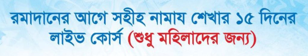 রমাদানের আগে সহিহ নামায শেখার ১৫ দিনের লাইভ কোর্স (শুধু মহিলাদের জন্য)